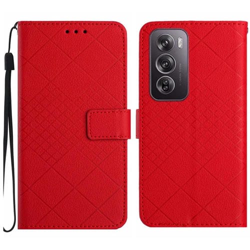 Para Oppo Reno12 5G Global Rhombic Grid Texture Funda de Cuero para Teléfono (Rojo)
