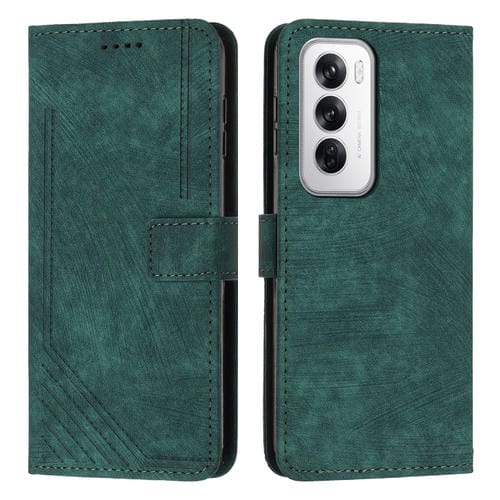 Para Oppo Reno12 5G Global Skin Feel Funda de Cuero con Patrón de Rayas y Cordón Largo (Verde)