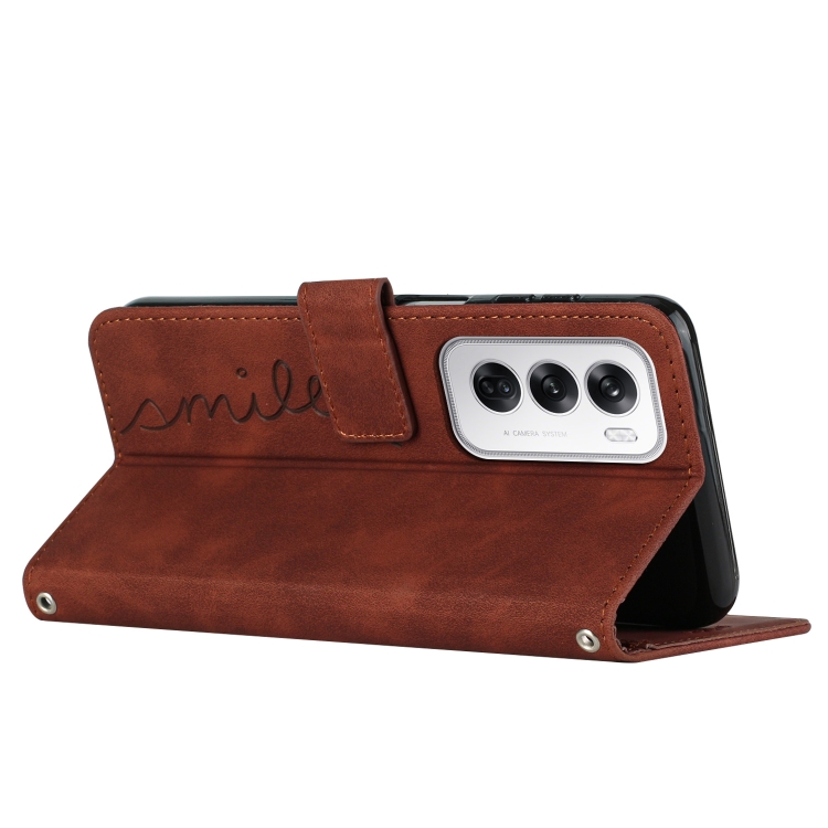 Para Oppo Reno12 5G Global Skin Feel Heart Funda para Teléfono de Cuero En Relieve con Cordón Largo (Marrón)
