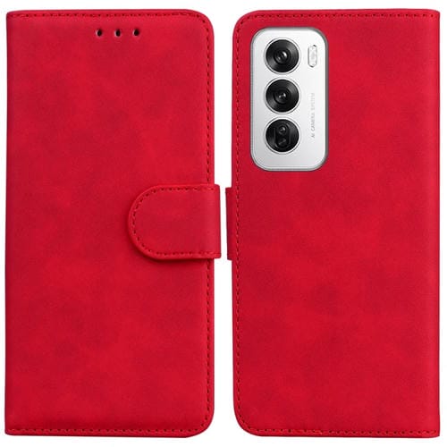 Para Oppo Reno12 5G Global Skin Feel Pure Color Funda de Cuero con Tapa para Teléfono (Rojo)