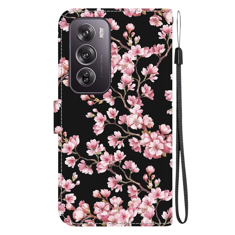 Para Oppo Reno12 Pro 5G Funda de Teléfono de Cuero con Dibujo Coloreado con Textura de Cristal Global (Flor de Ciruelo)