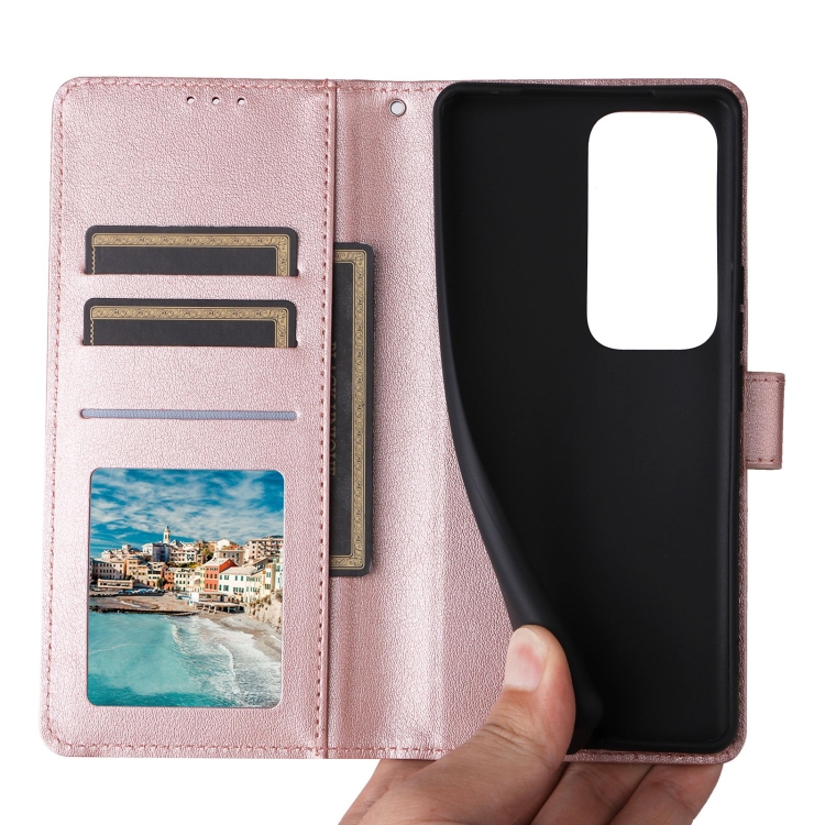 Para Oppo Reno12 Pro 5G Funda para Teléfono de Cuero con Tapa Horizontal Multifuncional Global con Tres Ranuras para Tarjetas (Oro Rosa)