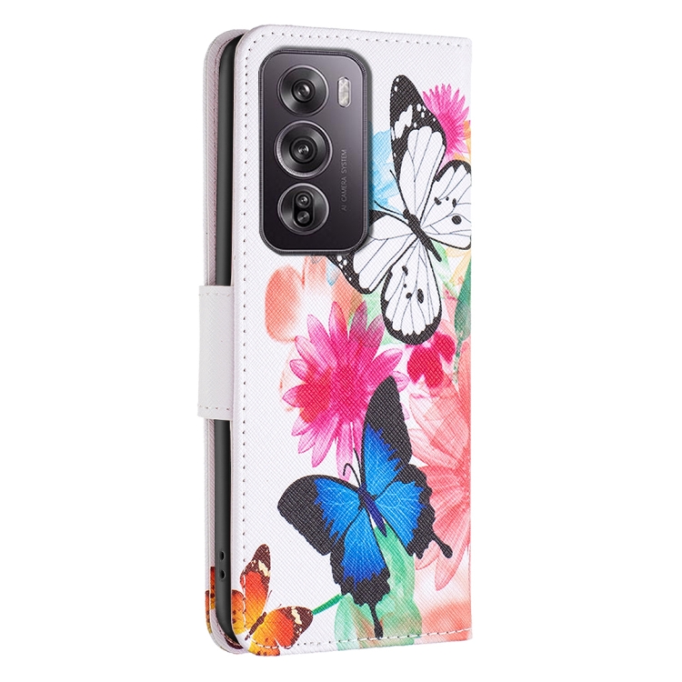 Para Oppo Reno12 Pro Funda de Cuero para Teléfono con Patrón de Dibujo Coloreado Global (Mariposas)