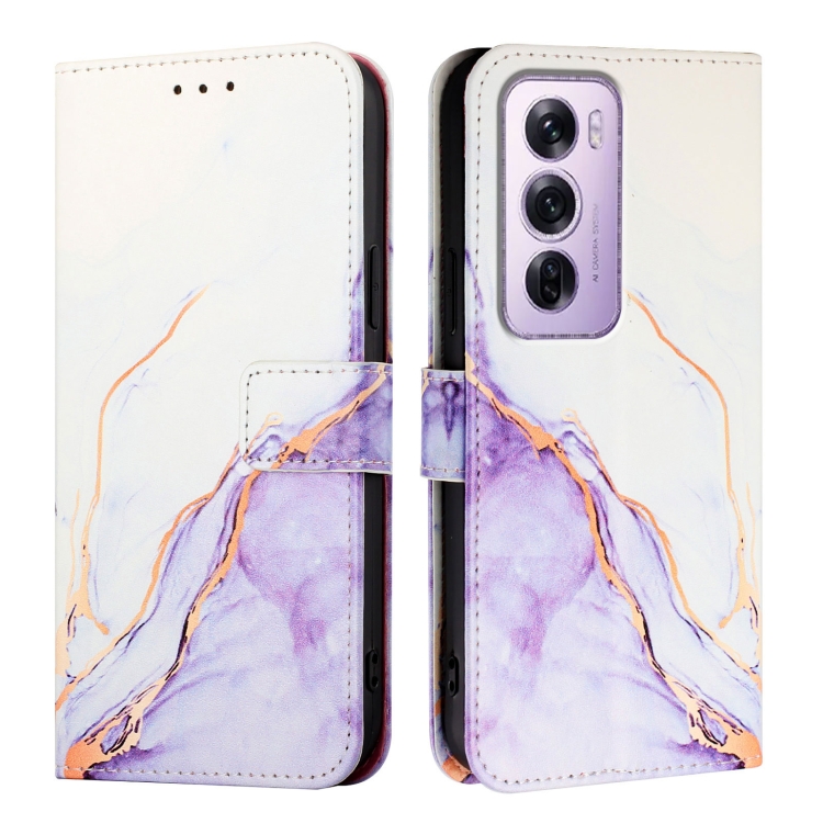 Para Oppo Reno12 Pro Global Pt003 Funda de Cuero con Tapa con Patrón de Mármol (Blanco Púrpura)