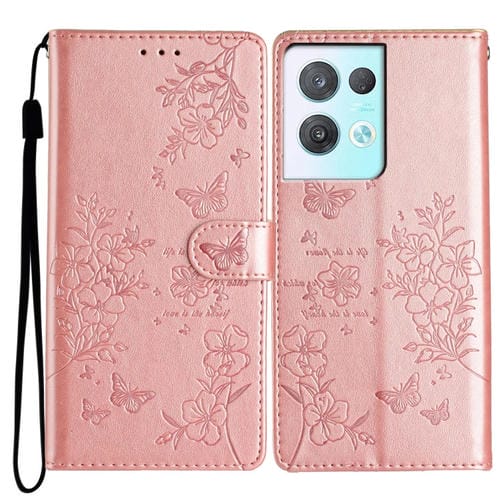 Para Oppo Reno8 Pro 5G Global Butterfly Love Flower Funda de Cuero para Teléfono En Relieve (Oro Rosa)
