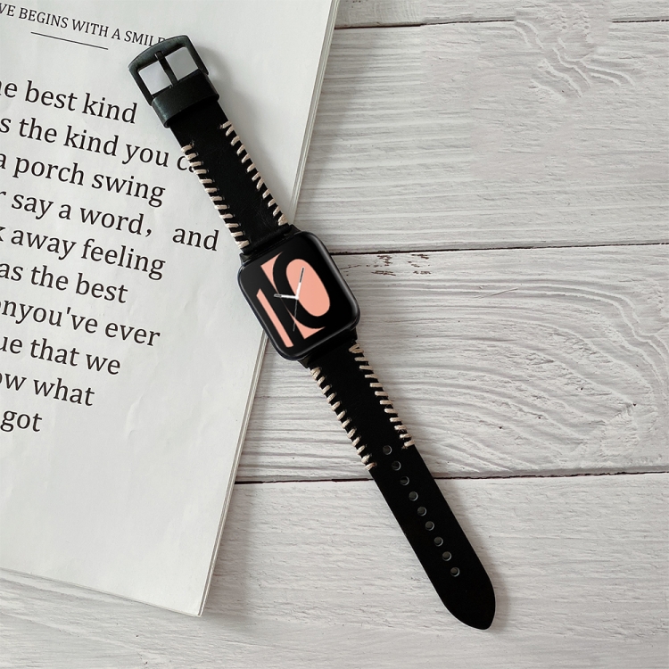 Correa de cuero Fish Bone para Oppo Watch 41mm (Negro)