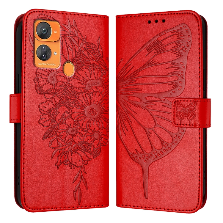 Funda de Cuero para Oukitel C33 con Mariposa en Relieve (Rojo)