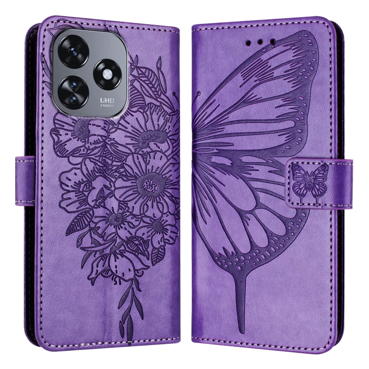 Funda de Cuero para Oukitel C51 con Mariposa en Relieve (Púrpura)