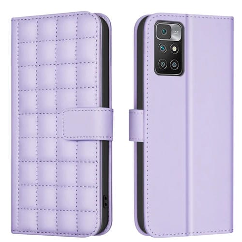 Para Redmi 10 2022 / Note 11 4G Funda de Cuero para Teléfono con Textura Cuadrada (Púrpura)