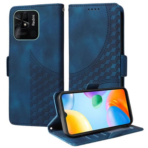 Para Redmi 10C / 10 India Funda para Teléfono de Cuero Estrellado con Rombos En Relieve (Azul)