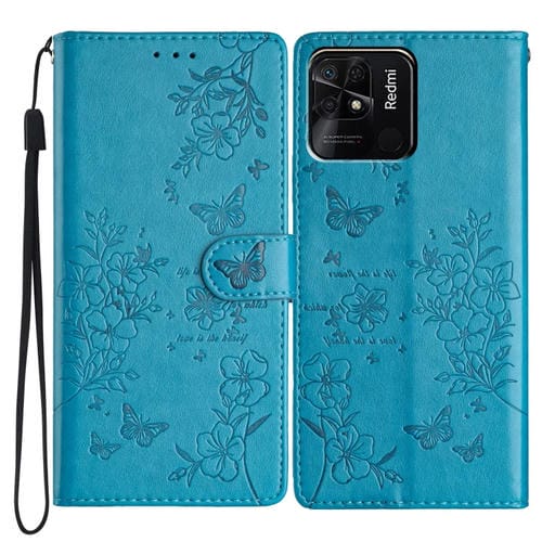 Para Redmi 10C Funda de Cuero para Teléfono con Mariposas y Flores (Azul)