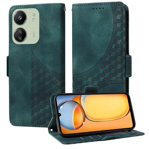 Para Redmi 13C 4G / 5G / 13R Funda para Teléfono de Cuero Estrellado con Rombos En Relieve (Verde)