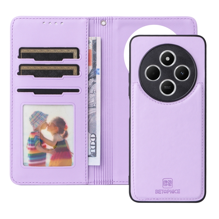 Para Redmi 14C 4G Betopnice Bn-005 2 En 1 Funda de Teléfono de Cuero Genuino Desmontable (Morado Claro)
