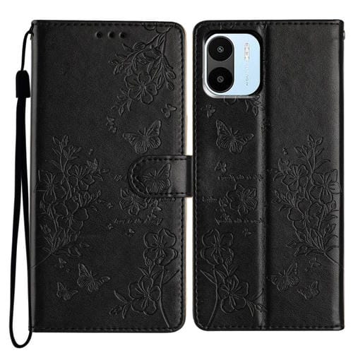 Para Redmi A1 Funda de Cuero para Teléfono con Mariposas y Flores (Negro)