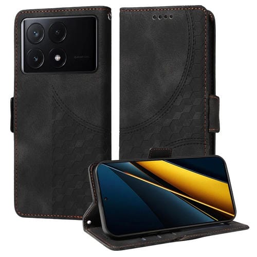 Para Redmi K70E 5G Funda para Teléfono de Cuero Estrellado con Rombos En Relieve (Negro)