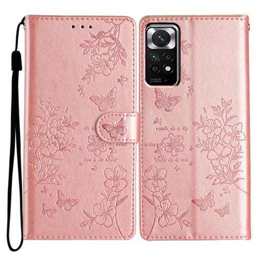 Para Redmi Note 11 4G Funda de Cuero para Teléfono con Mariposas y Flores Globales (Oro Rosa)