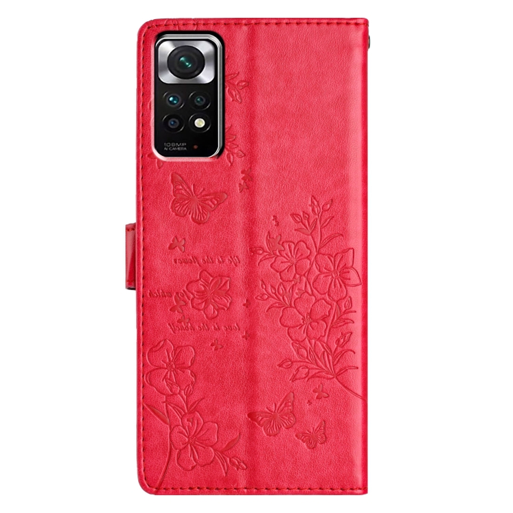 Para Redmi Note 11 4G Funda de Cuero para Teléfono con Mariposas y Flores Globales (Rojo)