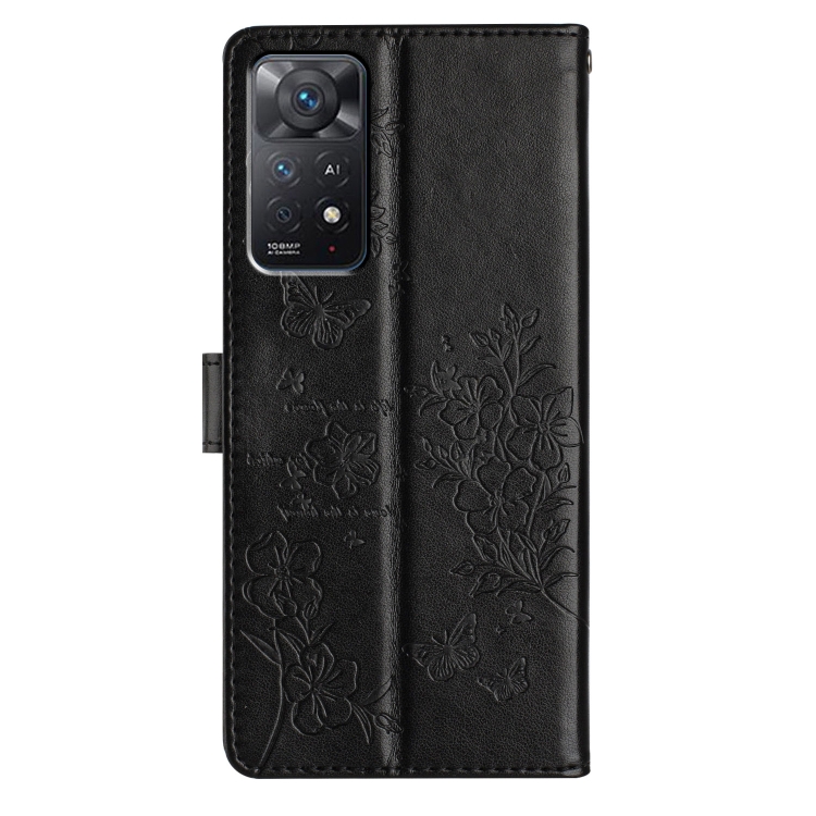 Para Redmi Note 11 Pro 5G Funda de Cuero para Teléfono con Mariposas y Flores Globales (Negro)