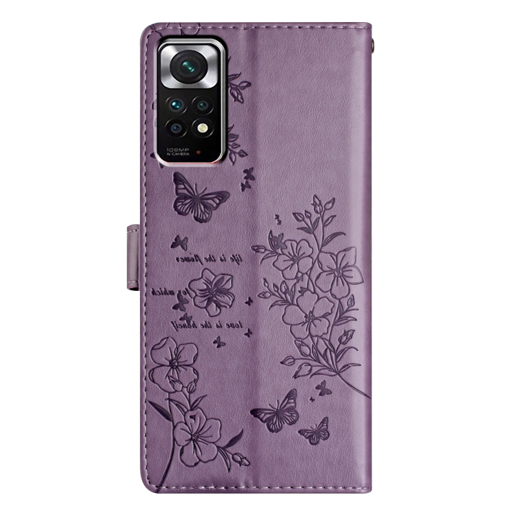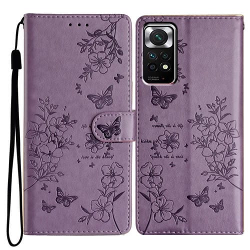Para Redmi Note 11S 4G Funda de Cuero para Teléfono con Mariposas y Flores (Púrpura)