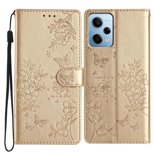 Para Redmi Note 12 Pro 5G Funda de Cuero para Teléfono con Mariposas y Flores Globales (Dorado)
