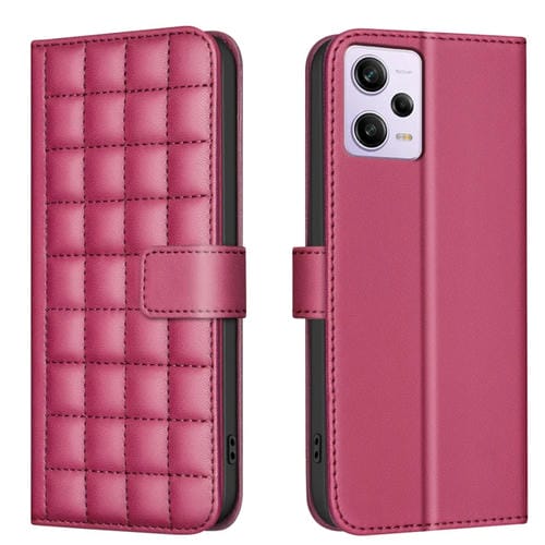 Para Redmi Note 12 Pro Funda de Cuero para Teléfono con Textura Cuadrada Global (Rojo)