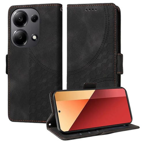 Para Redmi Note 13 4G Funda para Teléfono de Cuero Estrellado con Rombos En Relieve (Negro)