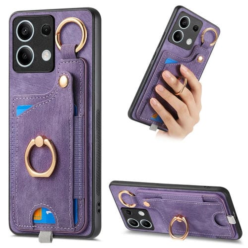 Para Redmi Note 13 5G Funda para Teléfono con Bolsa para Tarjeta con Anillo y Sensación de Piel Retro con Lazo para Colgar (Púrpura)