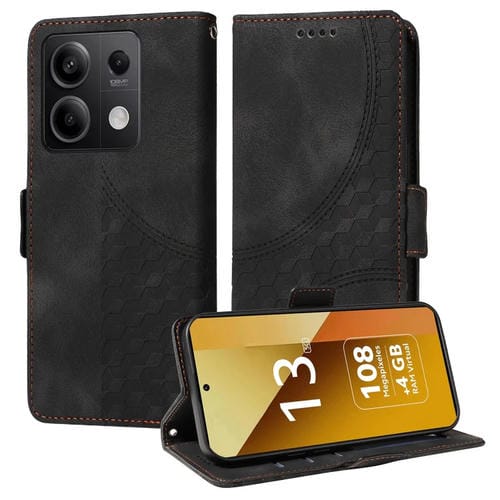 Para Redmi Note 13 5G Funda para Teléfono de Cuero Estrellado con Rombos En Relieve (Negro)