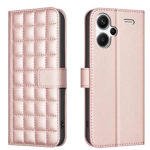 Para Redmi Note 13 Pro+ 5G Funda de Cuero con Textura Cuadrada para Teléfono (Oro Rosa)