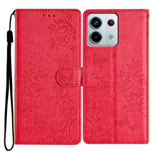 Para Redmi Note 13 Pro 5G Funda de Cuero para Teléfono con Mariposas y Flores (Rojo)