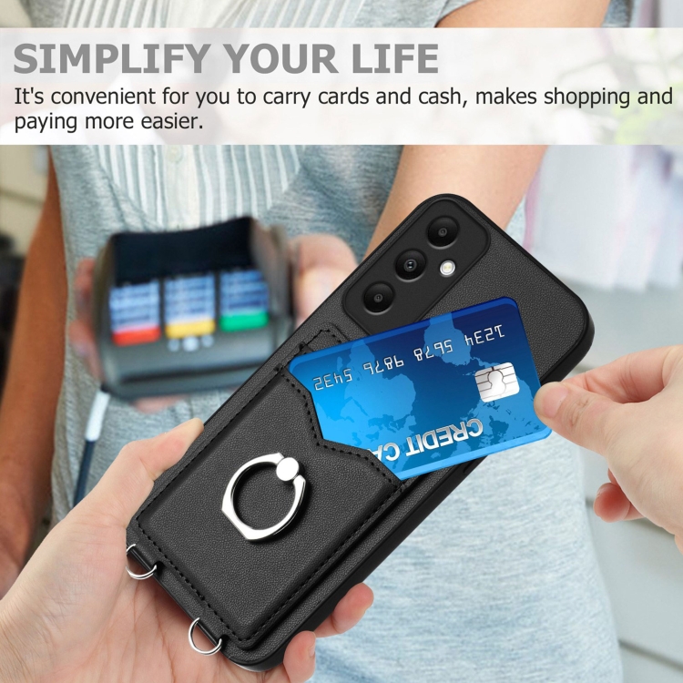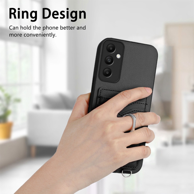 Estuche para Teléfono Samsung Galaxy A05S 4G Global R20 con Soporte para Tarjeta y Anillo (Negro)