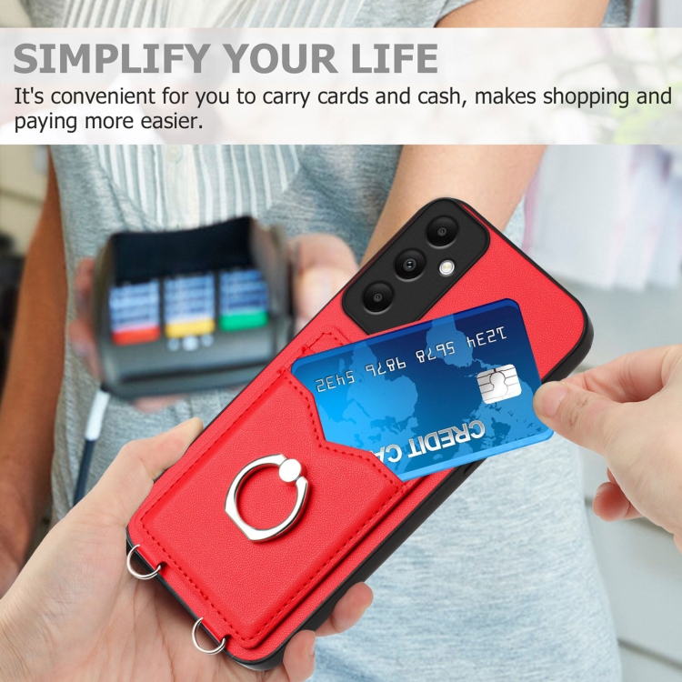 Estuche para Teléfono Samsung Galaxy A05S 4G Soporte para Tarjeta con Anillo (Rojo)