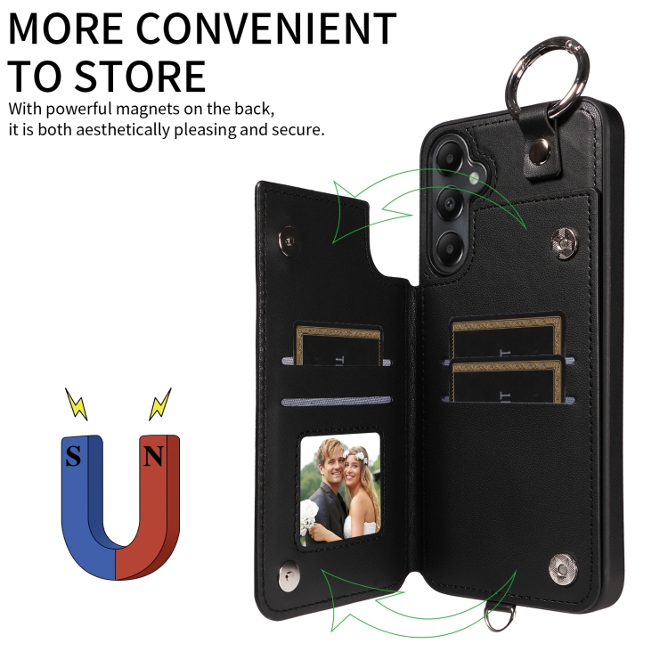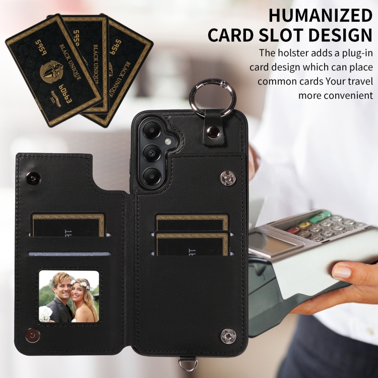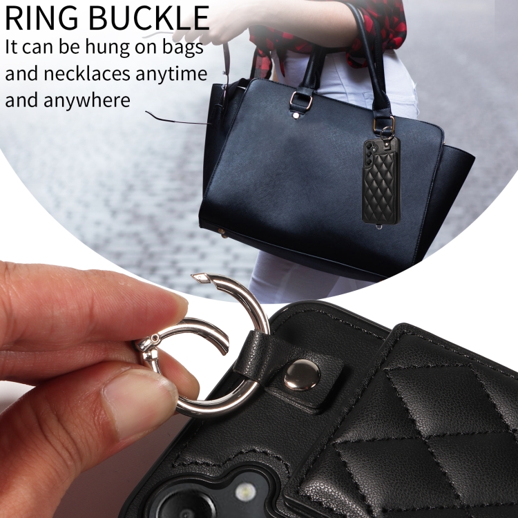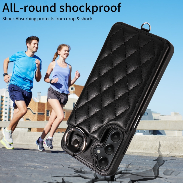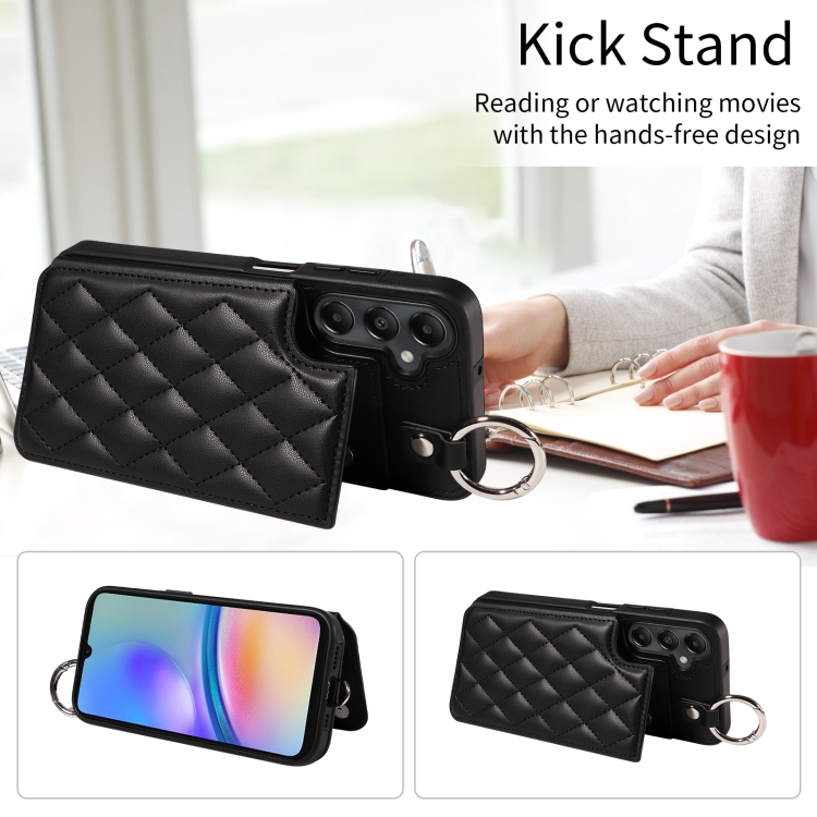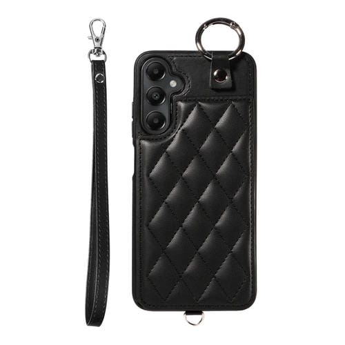 Estuche para Teléfono Samsung Galaxy A05S con Bolsa para Tarjetas Textura Rómbica y Cordón Corto (Negro)
