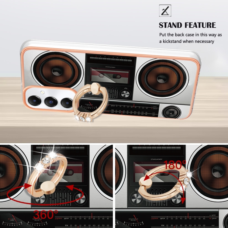 Estuche para Teléfono Samsung Galaxy A05S Imd Doble Cara Galvanoplastia Soporte Anillo (Radio Retro)