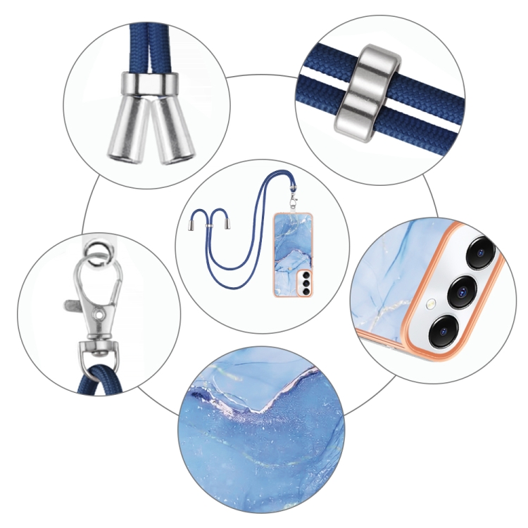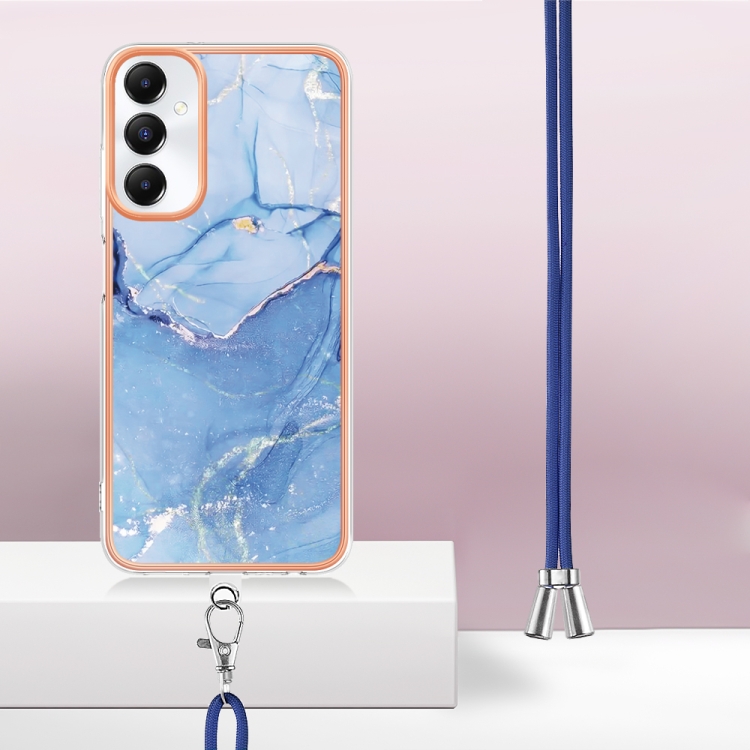 Estuche para Teléfono Samsung Galaxy A05S Imd Doble Cara Mármol Galvanizado con Cordón (Azul)