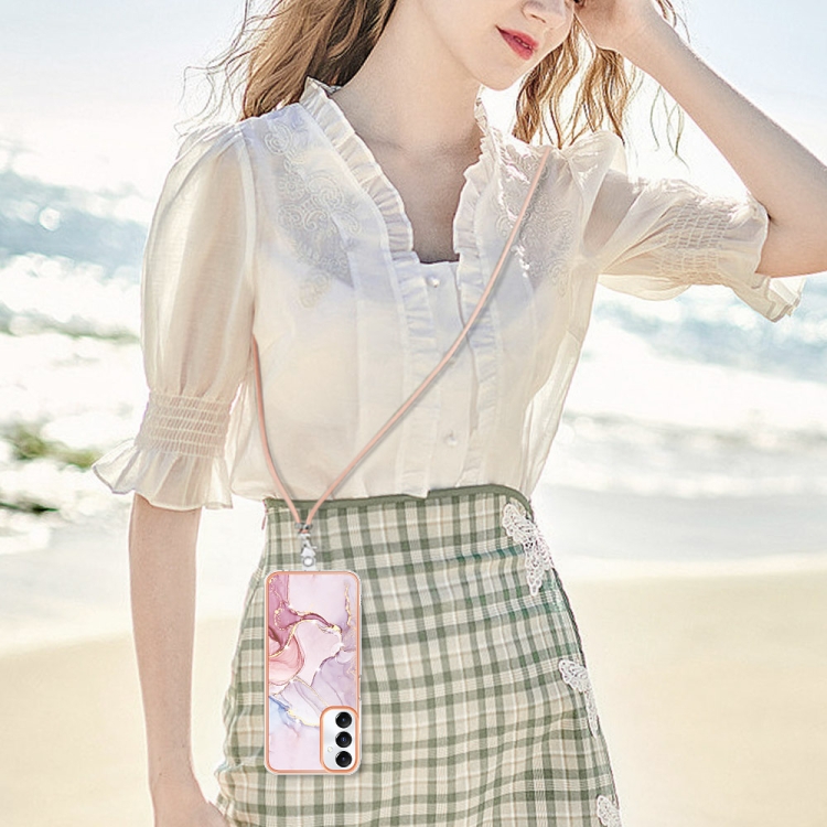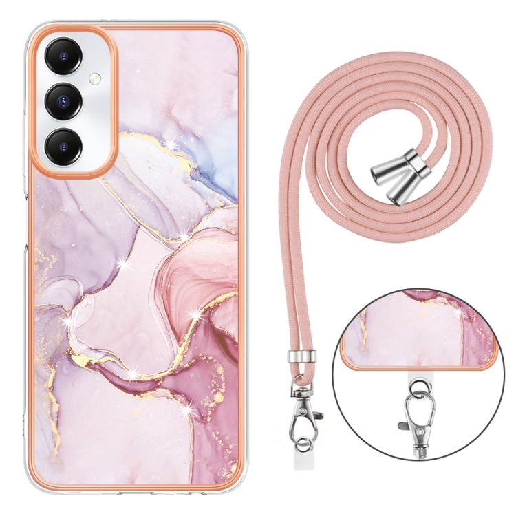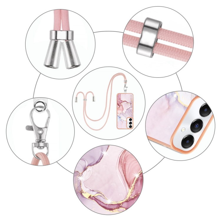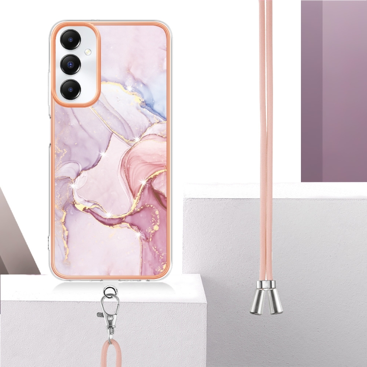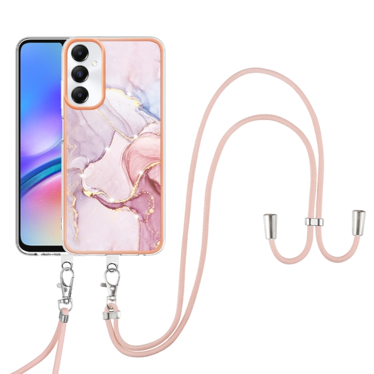 Estuche para Teléfono Samsung Galaxy A05S Imd Doble Cara Mármol Galvanizado con Cordón (Oro Rosa)