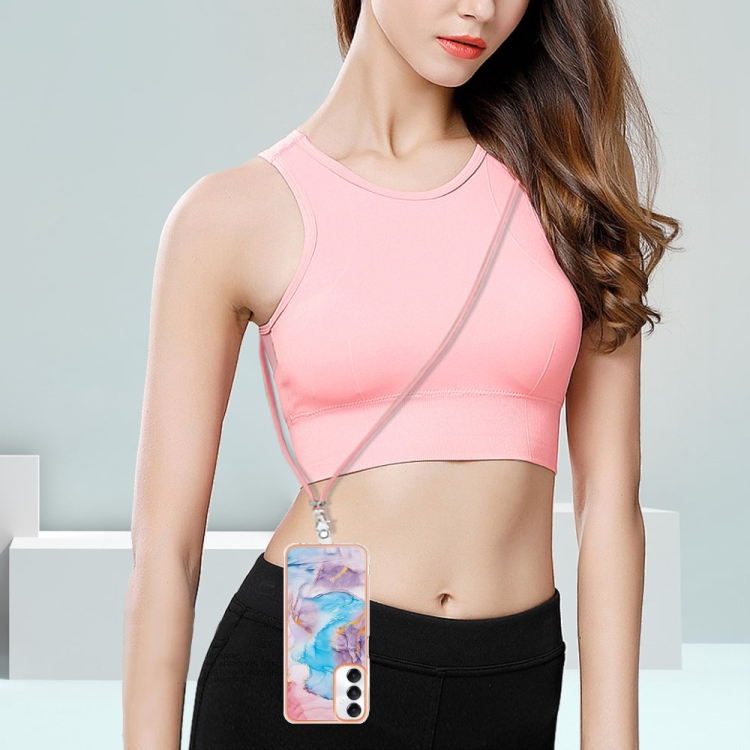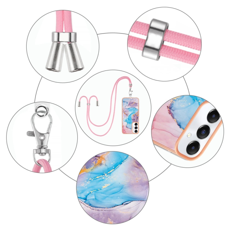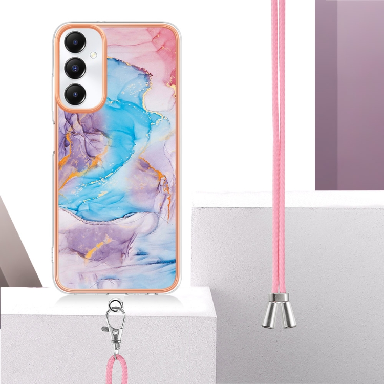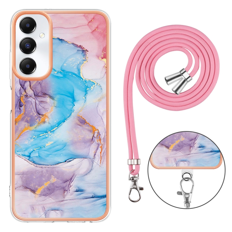 Estuche para Teléfono Samsung Galaxy A05S Imd TPU con Galvanoplastia y Cordón (Mármol Azul)
