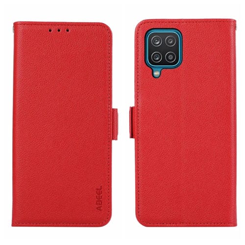 Funda para Teléfono Samsung Galaxy A12 Abeel Cuero Patrón Litchi Magnético Lateral (Rojo)