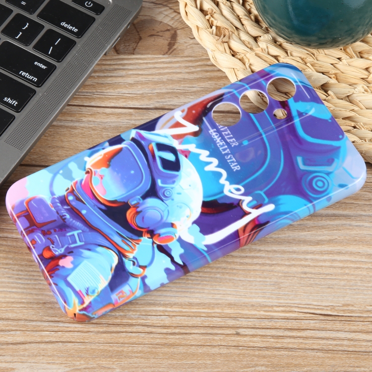 Estuche para Teléfono Samsung Galaxy A12 con Orificio Preciso para PC con Patrón Pintado (Astronauta de Pintura Azul)