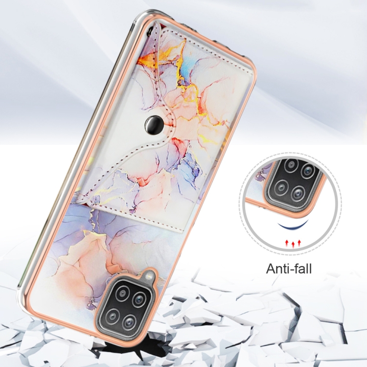 Estuche para Teléfono Samsung Galaxy A12 con Ranura para Tarjeta Imd y Patrón de Mármol (Blanco)
