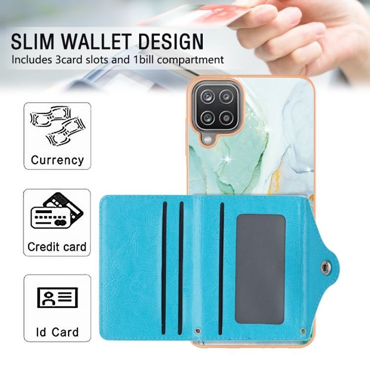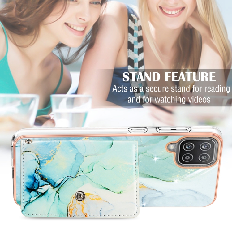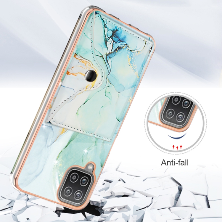Estuche para Teléfono Samsung Galaxy A12 con Ranura para Tarjeta Imd Patrón de Mármol (Verde)