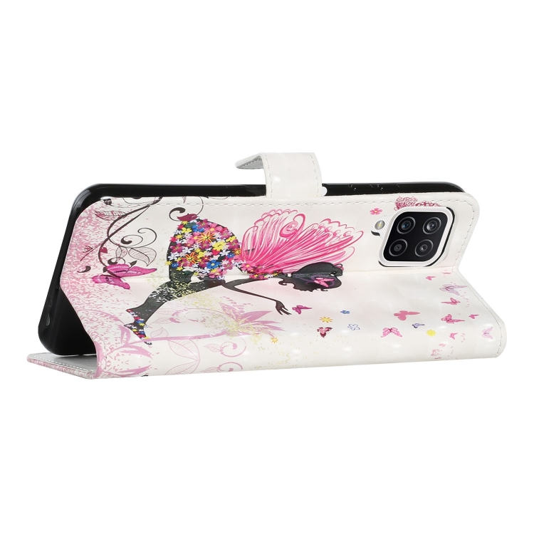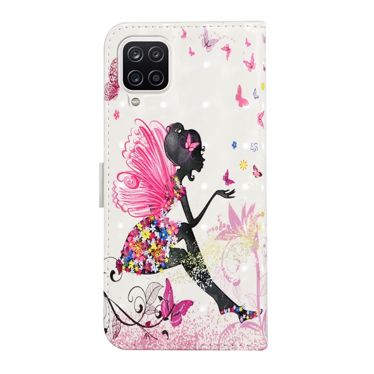 Funda para Teléfono Samsung Galaxy A12 Cuero Dibujo 3D Relieve al Óleo (Hada de Flores)