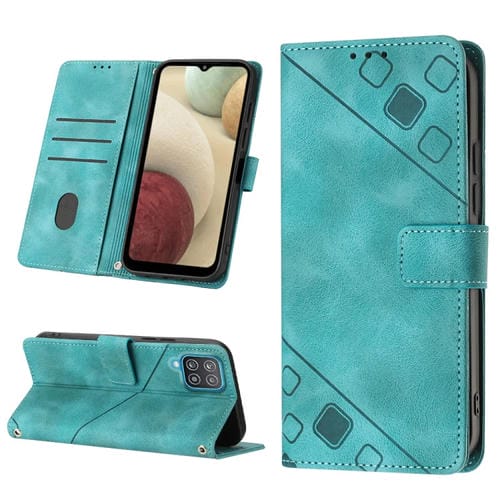 Estuche para Teléfono Samsung Galaxy A12 M12 Cuero En Relieve Tacto de Piel (Verde)