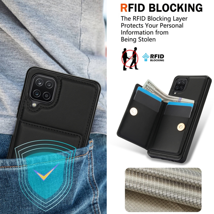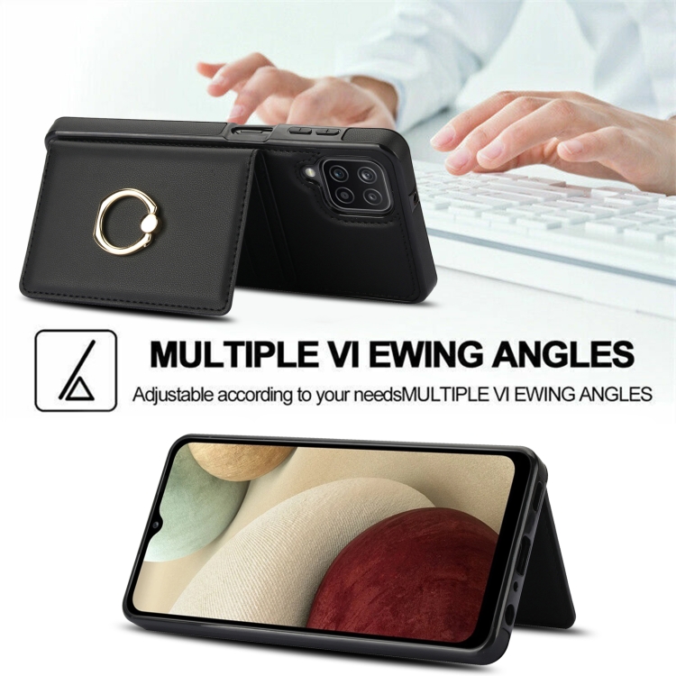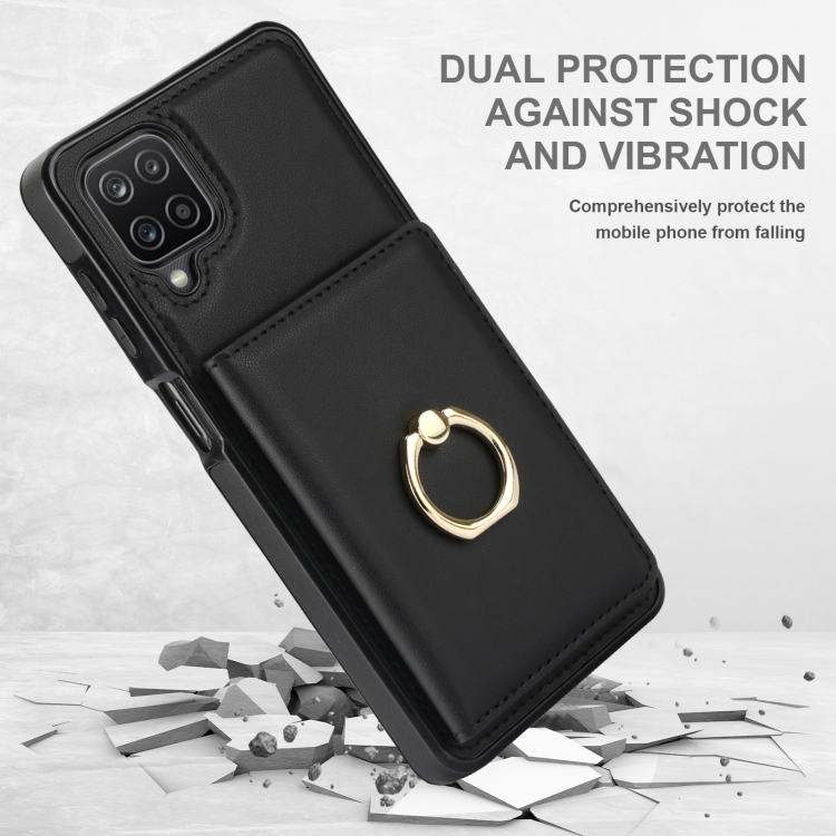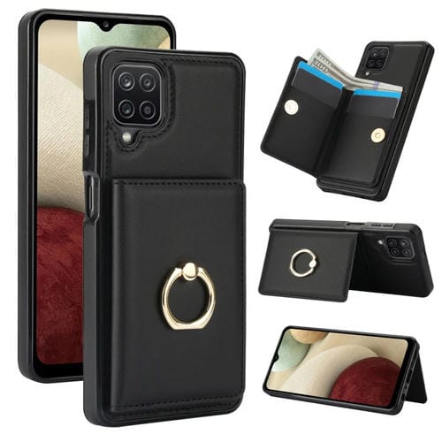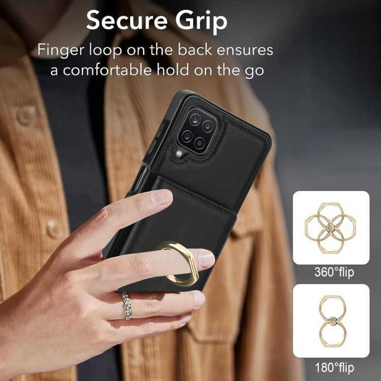 Estuche para Teléfono Samsung Galaxy A12 Rfid Tarjeta Antirrobo con Soporte para Anillo (Negro)