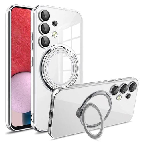 Estuche para Teléfono Samsung Galaxy A13 4G Galvanoplastia Magsafe Soporte Rotación 360 Grados (Plata)