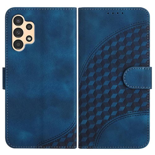 Funda para Samsung Galaxy A13 4G Yx0060 de Cuero con Relieve y Cabeza de Elefante con Cordón (Azul Real)