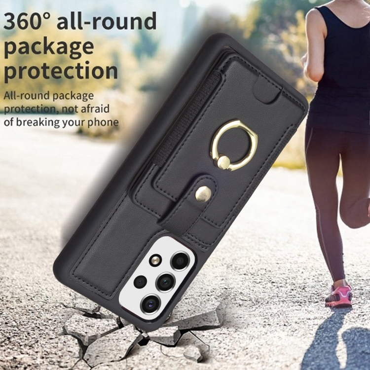 Para Samsung Galaxy A13 5G / 4G BF27 Anillo de metal Tarjeta Bolsa Titular Caja del teléfono (Negro)