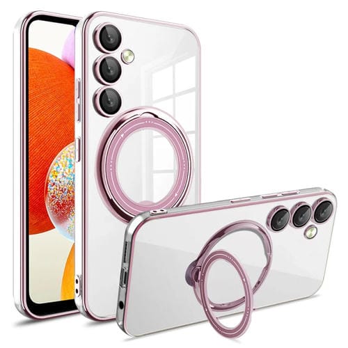 Estuche para Teléfono Samsung Galaxy A14 4G / A14 5G Galvanoplastia Magsafe Soporte Rotación 360 Grados (Rosa)