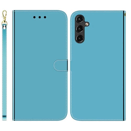 Estuche para teléfono Samsung Galaxy A14 5G Cuero con Superficie de Espejo Imitado (Azul)