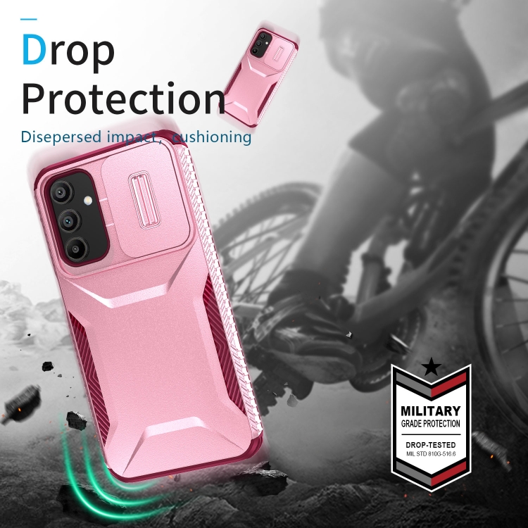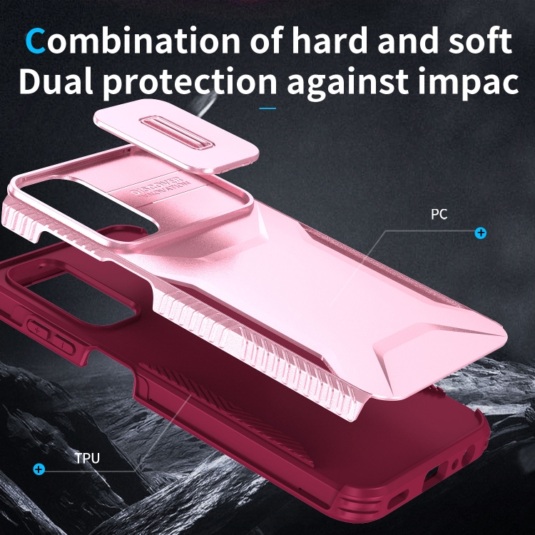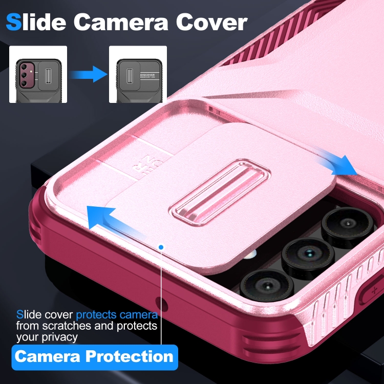 Estuche para Teléfono Samsung Galaxy A15 5G con Escudo de Levas Deslizante (Rosa + Rojo Rosa)